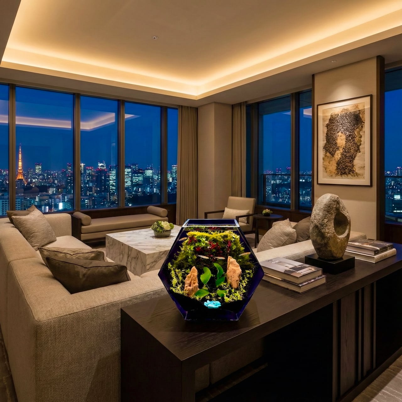 こちらのアクアインテリアはコンパクトなので気分や季節に応じて場所を変えたり、お手入れも簡単です。