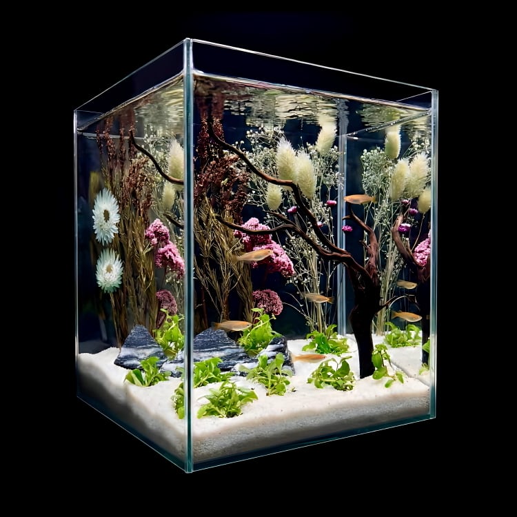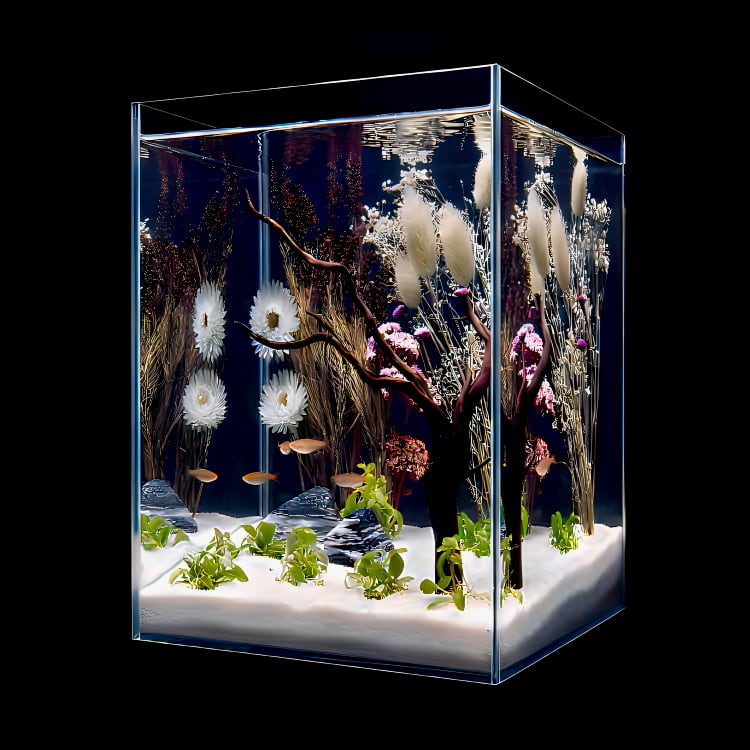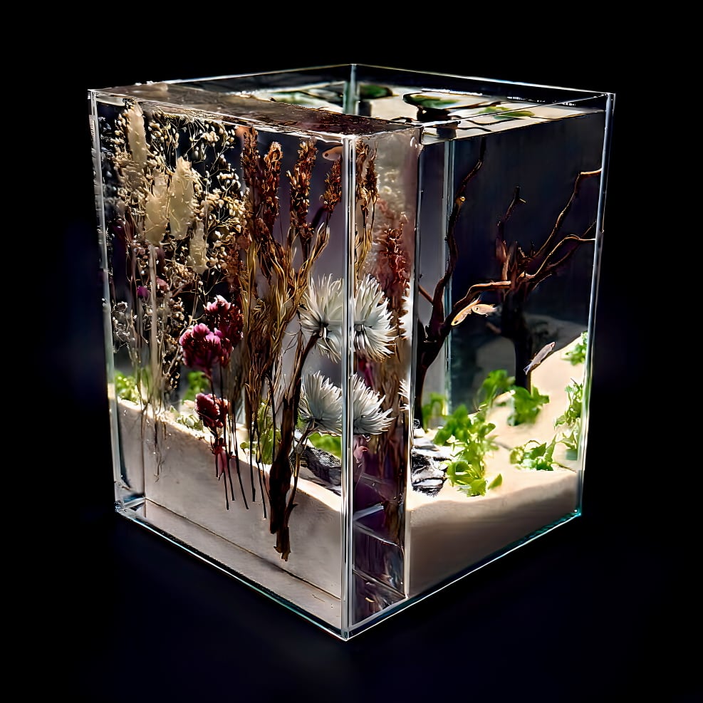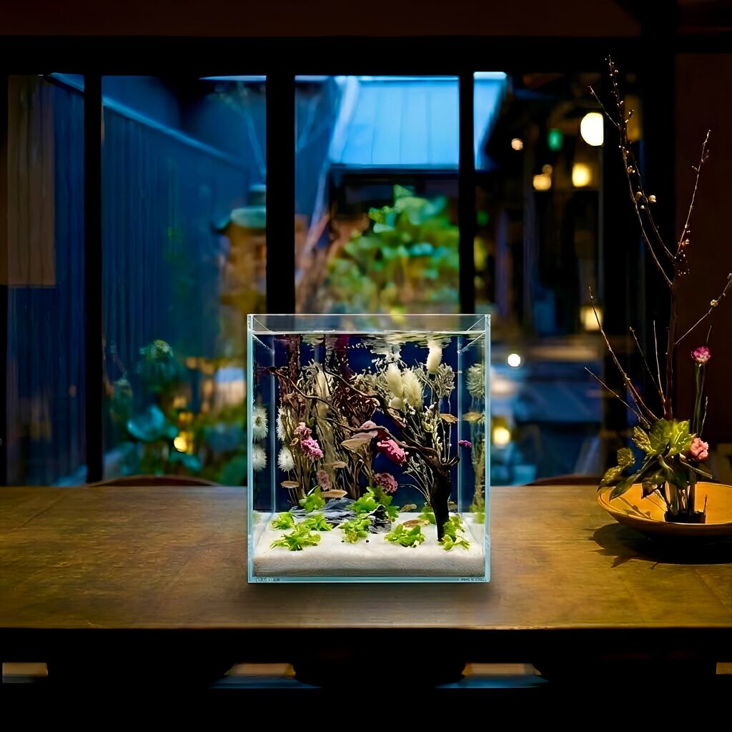 【幻花水景(げんかすいけい)】は、水景用フラワーオブジェをアクセントにした、大人のためのハイクラス・アクアインテリアです。