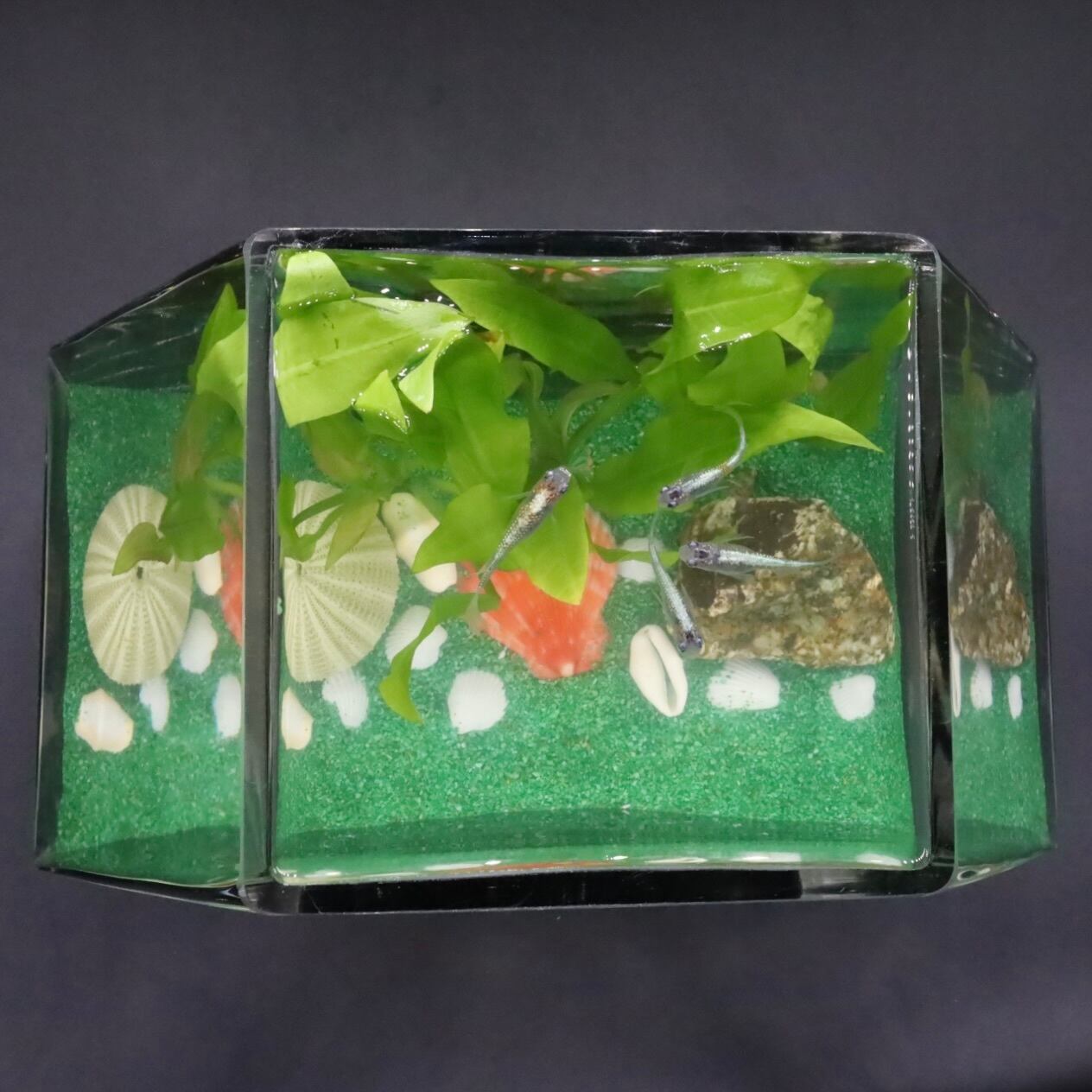内容物:メダカ5匹(オス2匹、メス2匹、死着保証1匹)・水草・砂利・石・貝殻・水槽・取扱説明書